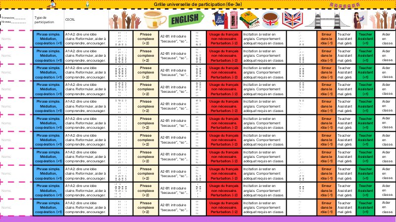 Grille de participation au collège.