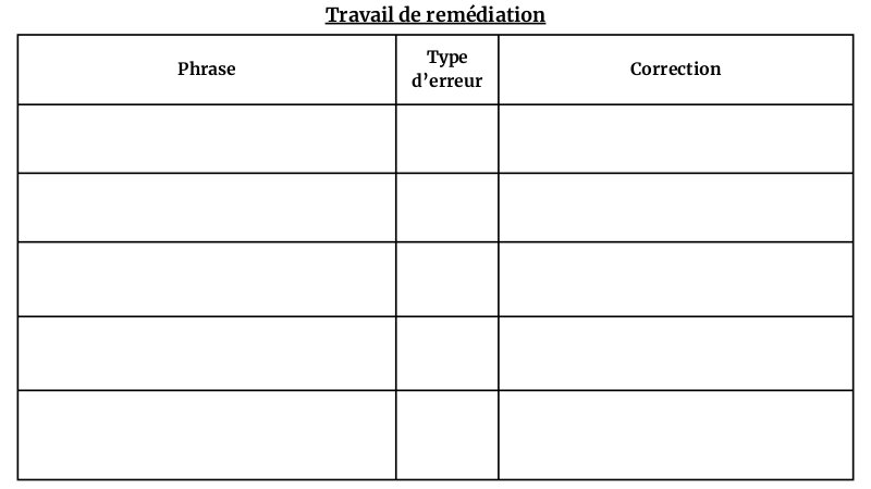 Travail à faire suite à une évaluation où des erreurs récurrentes apparaissent.