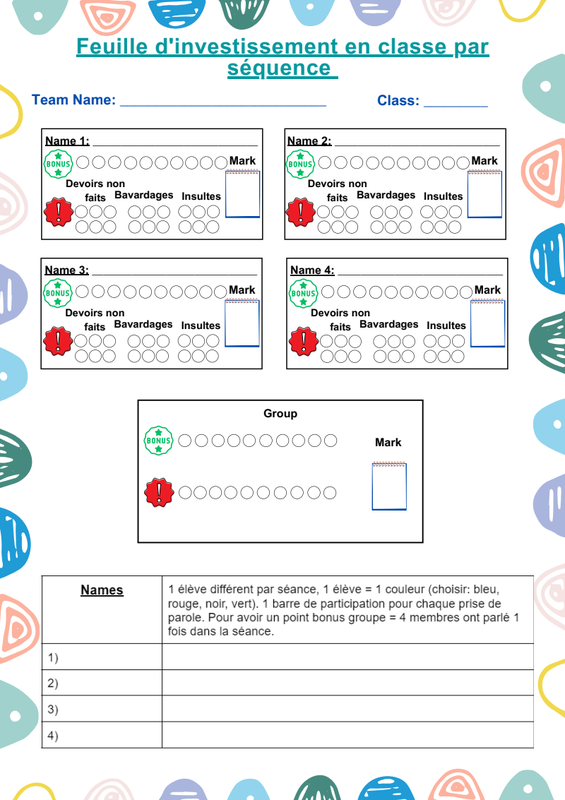 Feuille d'investissement en classe par séquence.