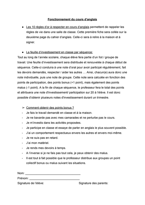 Fonctionnement Du Cours D’Anglais
