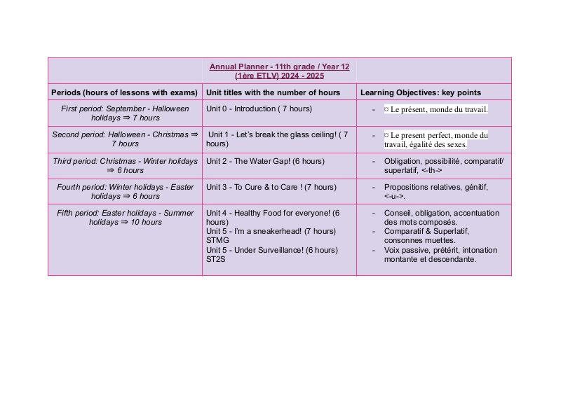 Annual Planner ETLV 1ère STMG & ST2S, 2024-2025.